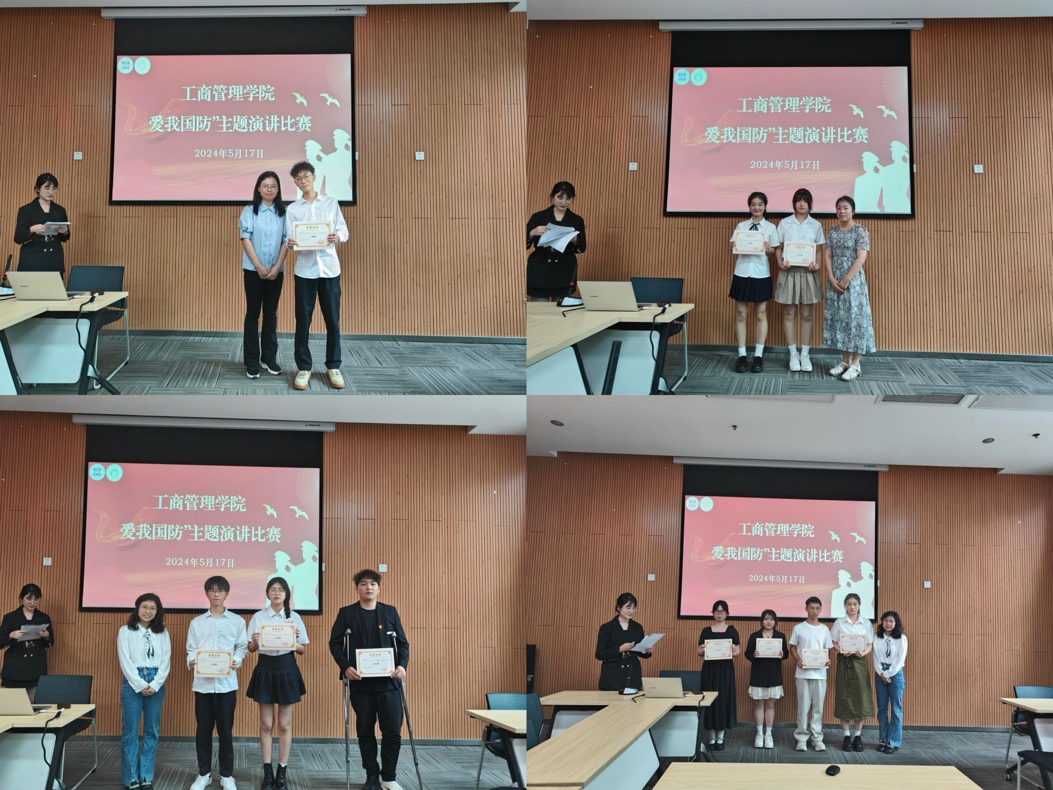 评委老师们为获奖选手颁发奖状并鼓励他们继续发挥典型示范作用,为实现中华民族伟大复兴的中国梦贡献力量,同时强调,国防教育是培养青年爱国主义精神、增强国家安全意识的重要途径。