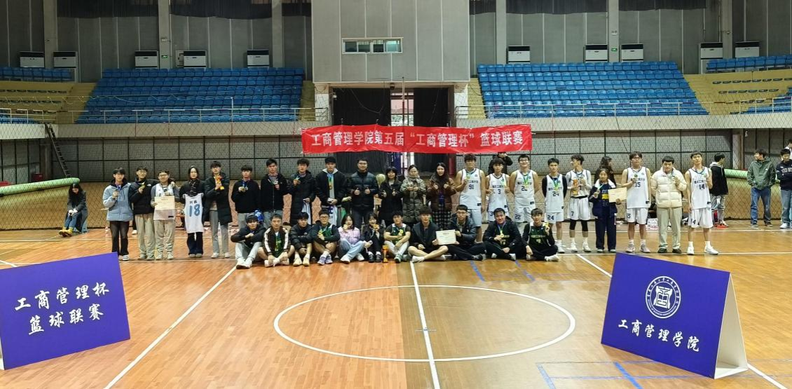 比赛开始前由精彩的开场舞活跃气氛,随后主持人介绍决赛队伍及注意事项等,双方便展开了激烈角逐。酒店管理队率先得分并且拉开比分优势,但研究生队不甘示弱,逐渐扳平并反超比分。场上球员们挥洒汗水,场下观众呐喊助威,气氛热烈非凡。经过激烈角逐,研究生队凭借出色的团队配合和战术运用,成功夺得冠军。本次篮球联赛研究生队、22酒店队、22人资队分别获得冠军、亚军、季军,最后由党委副书记程亚、学工办主任谭予涵、辅导员老师黄韵和廖申伟对获胜队伍以及研究生队伍MVP队员鹿家耀同学颁发奖杯及奖状,进行表彰与祝贺并与篮球赛队员们合影留念。