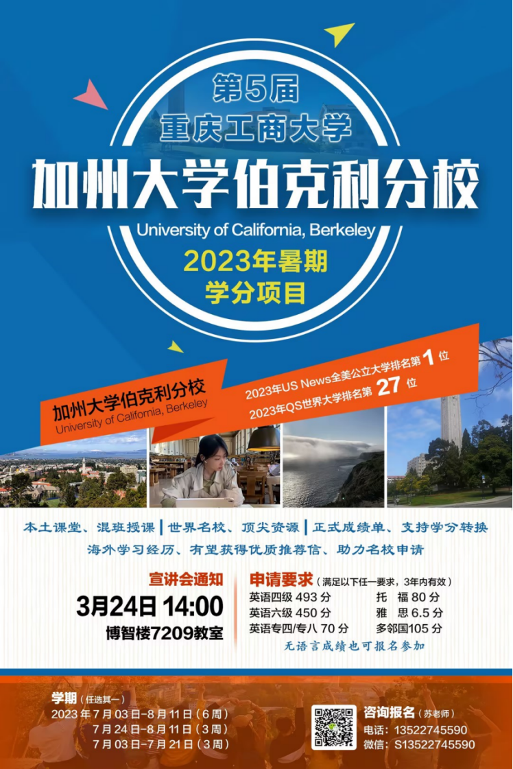 第五届加州大学伯克利分校2023年暑期学分项目报名通知