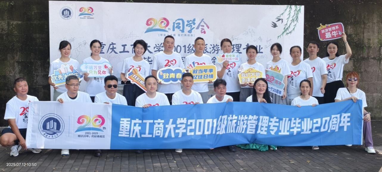 2025年7月12日,2001级旅游管理专业25名员工重返南岸主校区,开展毕业20周年“廿载芳华故园梦,重聚南岸话初心”返校活动。