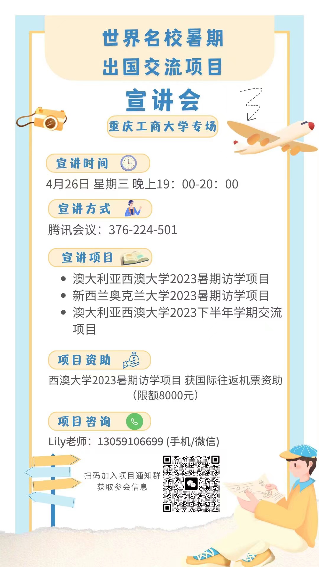 新西兰、澳大利亚员工交流项目线上宣讲会,欢迎感兴趣的同学进入腾讯会议参加。