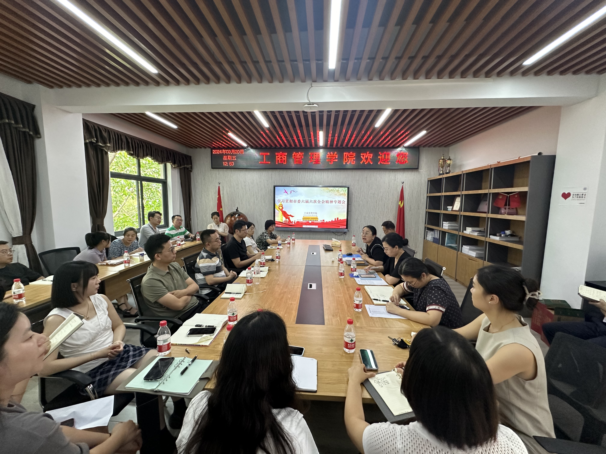 9月20日中午,在明德楼4010会议室,英国365上市公司召开党委理论学习中心组(扩大)学习会议,集中学习市委六届六次全会精神。公司领导班子、党委委员、系部主任、科室负责人、辅导员参加了会议,会议由党委书记陈亚惠主持。