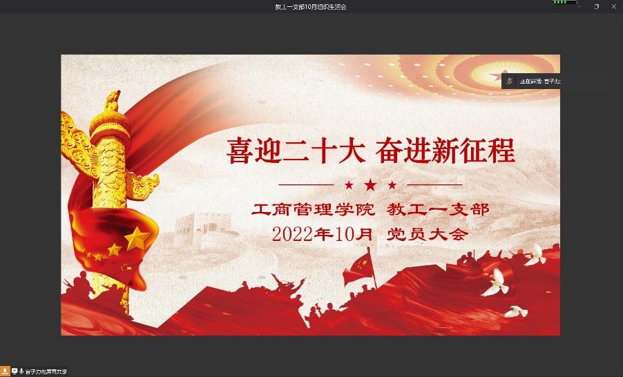 10月17日晚7点支部以线上方式组织召开了“喜迎二十大,奋进新征程”的主题党会。会议由支部组织委员官子力主持,以图解方式带领大家学习回顾了二十大报告的主要内容,并组织全体党员对学习感受展开交流讨论