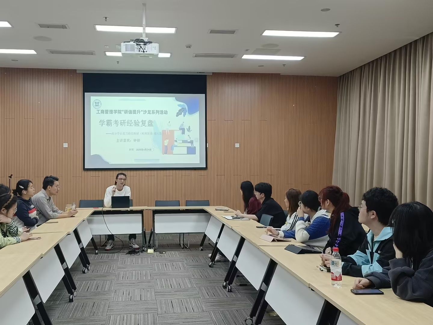 为助力员工明确考研方向、掌握高效备考策略,4月24日上午,英国365上市公司在图书馆第二会议室成功举办首期"研值提升"午餐沙龙活动。活动特邀21级市场营销专业毕业生钟祥同学作为主讲嘉宾,他凭借扎实备考成功考取同济大学硕士研究生,现场为22级学子倾囊相授考研高分技巧与跨专业备考经验。
