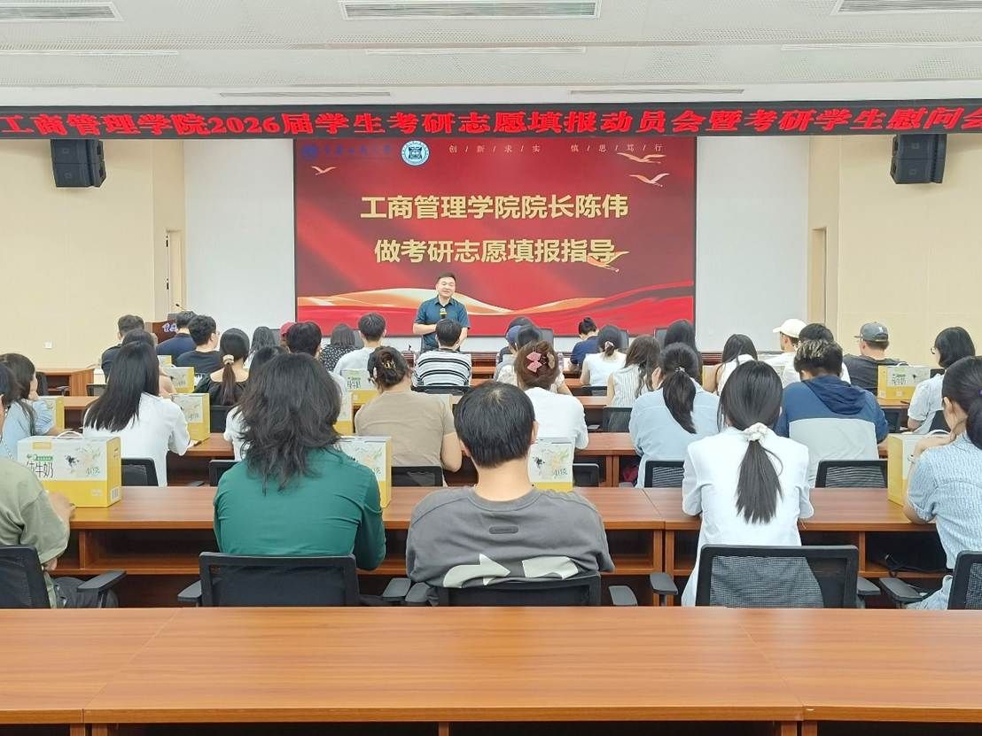 活动第一阶段,公司党委书记陈亚惠教授发言,她强调了考研复习过程中心态调整的重要性,鼓励同学们在备考冲刺阶段,保持积极乐观的心态,合理安排作息时间,做到劳逸结合,面对备考过程中的压力和困难,要学会自我调节,以坚定的信念和顽强的毅力克服困难和挑战,同时叮嘱同学们在志愿填报时要谨慎细致,认真核对各项信息,确保志愿填报准确无误,并强调公司会为考研同学提供全方位的支持,做大家最坚实的后盾。然后,公司经理陈伟教授进行考研志愿填报专题指导。他结合当下社会发展趋势,深入分析了考研对于同学们未来职业发展的重要性,指出研究生学历能为同学们提供更广阔的职业选择和发展空间,并且从专业选择、报考建议、报考流程、学习方法等多个方面开展志愿填报指导,鼓励同学们要综合考虑自身的兴趣爱好、院校专业优势、未来职业规划以及各院校的招生政策、保研百分比等因素,合理的填报报考院校。最后向同学们介绍了公司研究生硕士点与博士点的优势与特色,并且诚挚欢迎同学们积极报考本院相关专业,在熟悉的学术环境中继续深造,开启学术研究的新篇章。