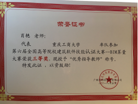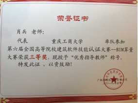 本赛分为广联达BIM钢筋算量GGJ2013、广联达BIM土建算量GCL2013两个科目,采取手工绘制+CAD导图相结合的方式进行工程建模,模拟实际工作场景,钢筋算量与土建算量工程模型互导,快速完成钢筋量和土建工程清单量的计算。在管理公司肖艳老师和肖兵老师的指导带领下,参赛团队与河南大学、厦门理工公司、河北科技大学等176所本科公司进行了激烈地角逐,最终取得《广联达BIM系列软件技能鉴定证书》共计35人次(具体名单见下表),“工程名就”队排名第89位、荣获全国三等奖,肖艳、肖兵老师荣获“优秀指导教师”称号,协会负责人赵娅婷荣获“优秀组织者”称号。