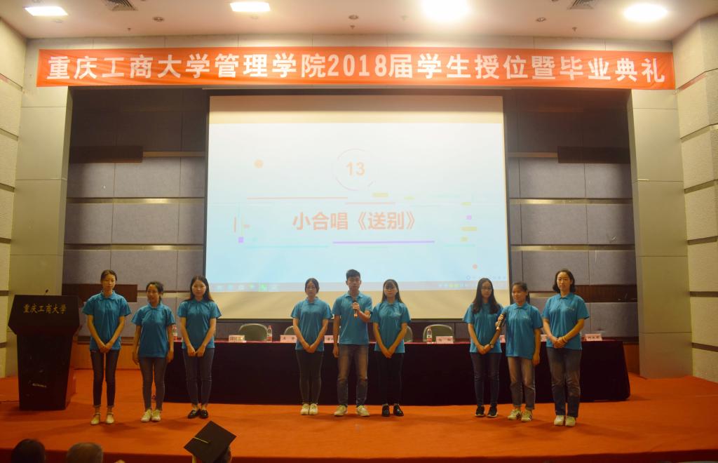 各班毕业生录制的告别视频掀起了毕业典礼的高潮,分别用不同形式表达了对母校和老师的感谢和对学弟学妹们的祝福。伴随着学弟学妹们《送别》的歌声,管理公司2018届员工授位暨毕业典礼圆满结束。毕业生们将带着母校的荣光,心怀对母校的不舍以及对未来的憧憬扬帆起航,踏上新的征程。