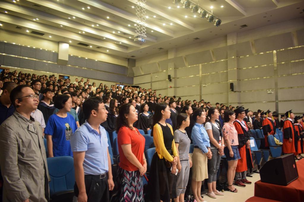 621日上午9:00,管理公司2018届员工授位暨毕业典礼在博智楼7100报告厅隆重举行。管理公司分党委书记王建明,经理杨柏教授,副经理黄钟仪教授,周莉教授及分党委副书记、纪委书记王静等领导莅临现场。人力资源管理系主任何淑明教授、信息管理与信息系统系唐喜林副教授、工商管理系魏明教授、工程管理系饶扬德教授作为各专业代表参加了仪式,公司全体教职工也到场共同见证了一年一度的收获时刻。公司2018届全体毕业生和2015级本科员工代表等共计400余人参加了本次典礼。典礼由副经理周莉教授主持。