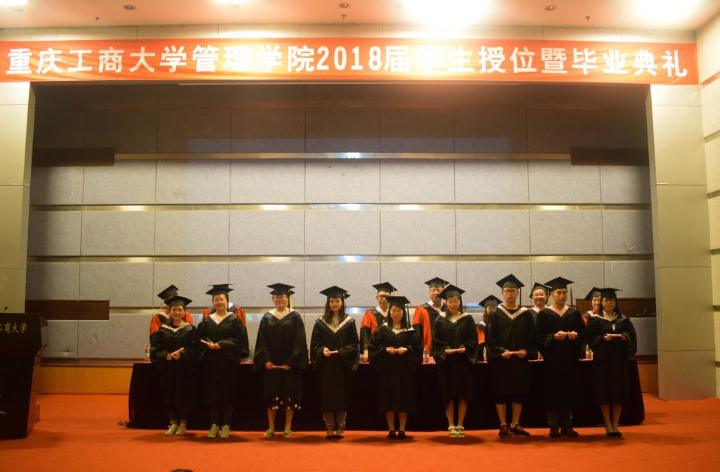 大会在庄严的国歌声中拉开序幕,首先王建明书记为毕业典礼致辞,他借用张载的名言向所有的毕业生提出了殷切的期盼:“为天地立心,为生民立命,为往圣继绝学,为万世开太平。现在才仅仅是人生的新起点,希望大家在未来的日子里一路高歌,大展宏图,驰骋人生。”随后大家一起观看了各班毕业生的在校花絮,回顾在工商求学期间的欢声笑语。副经理黄钟仪教授宣读了优秀毕业生名单,副书记王静宣读了2018届升研员工名单,院领导及各专业教师代表为优秀毕业生颁发荣誉证书,所有的荣耀和成绩都在此时此刻变得更加刻骨铭心。