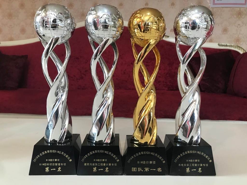 其中,BIM造价赛项参赛队在与全国153所院校、176个团队的激烈角逐中,荣获建筑与装饰工程量计算专项一等奖(排名全国第2)、水电安装工程量计算专项一等奖(排名全国第1)、BIM招标项目管理专项一等奖(排名全国第2),以及BIM造价赛项团队一等奖(排名全国第2)。BIM施工项目管理赛项参赛队在与全国127所院校、147个团队的激烈角逐中,荣获BIM施工组织设计专项一等奖、项目管理沙盘专项一等奖、BIM招投标管理专项一等奖。