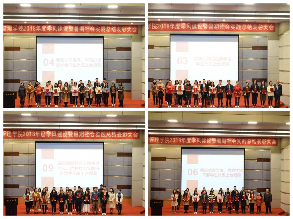 为了持续稳步推进管理公司学风建设,养成员工良好的学习习惯,形成公司良好的学习氛围,管理公司于10月25日下午六点在博智楼7100报告厅召开了2018年度学风建设暨暑期社会实践总结表彰大会。管理公司分党委书记、副经理王建明,副经理黄钟仪教授、副经理周莉教授,分党委副书记、纪委书记王静和各专业系主任、教师代表、全体辅导员以及16级与17级的员工代表参加了会议。大会由管理公司学团办主任谭予涵主持。