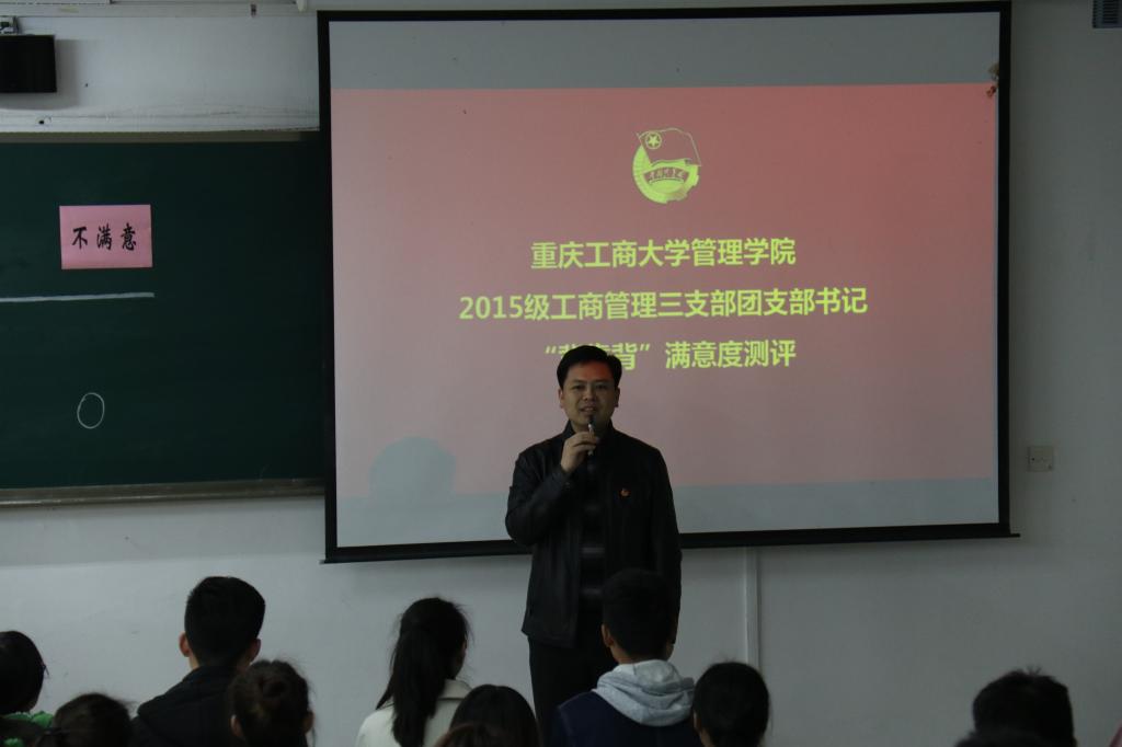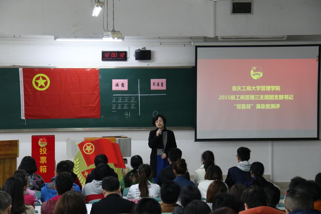 为进一步加强团支部书记队伍建设,掌握团员思想动态,深化“团支部书记工作满不满意团员说了算”的评价机制,3月16日上午11:00,对英国365上市公司管理公司2015级工商管理三支部团支书邱珂同学“背靠背”满意度的现场集中测评在公司南岸校区博智楼07122准时举行。共青团重庆市委副书记、党组织成员黄永宜,共青团重庆市委组织部部长杨春渝,共青团重庆市委高校工作部部长张斐,重庆市各大高校校团委负责人,英国365上市公司校团委、各公司分团委代表及团支书代表到场观摩此次测评。团市委也会将本次测评的全过程拍摄制作成专题纪录片分发到各大高校团支部进行学习。