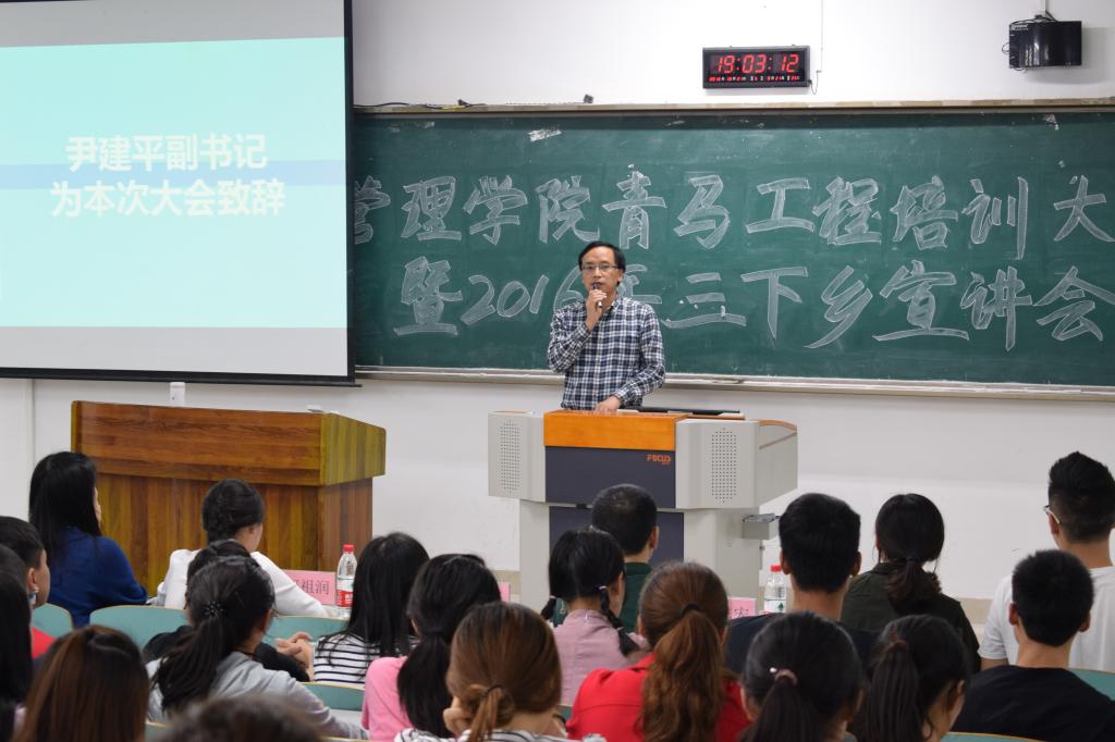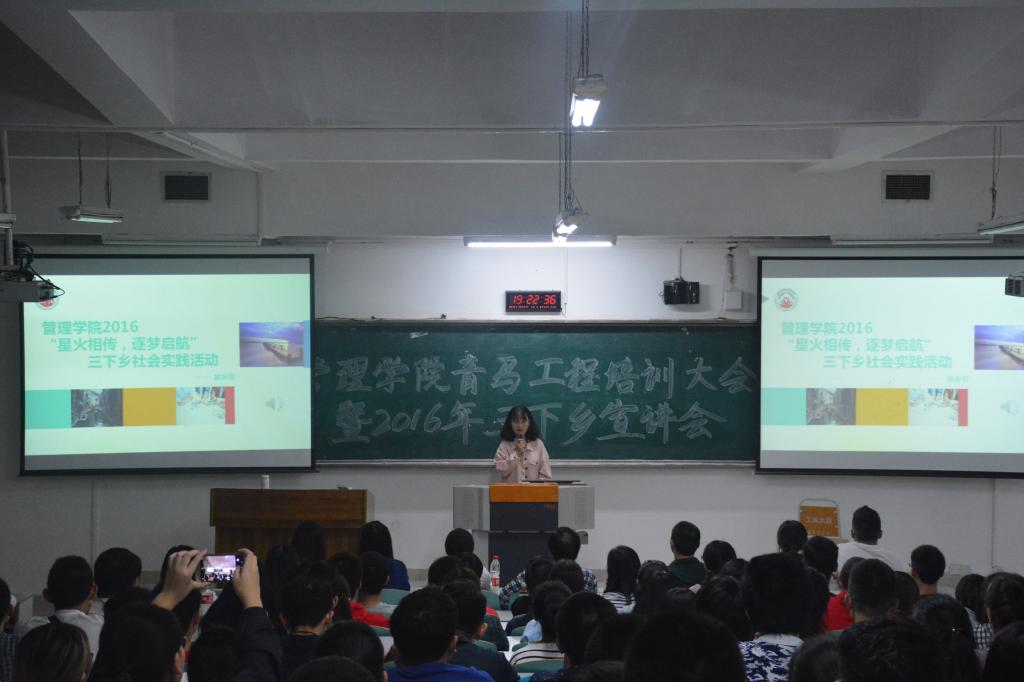 星火相传,逐梦起航,管理公司2016年“三下乡”暑期社会实践工作圆满落幕。10月21日19:00,管理公司2016年青马工程培训大会暨“三下乡”宣讲会在南岸校区博智楼07121正式召开。管理公司党总支尹建平副书记,学团办主任卓志宏老师,分团委书记何祖润老师出席本次大会。此外,管理公司分团委员工会干部干事、“爱心桥”义工志愿者协会干部干事、管理公司2014、2015级各班级代表以及各党员服务站及楼栋代表也参加了本次会议。