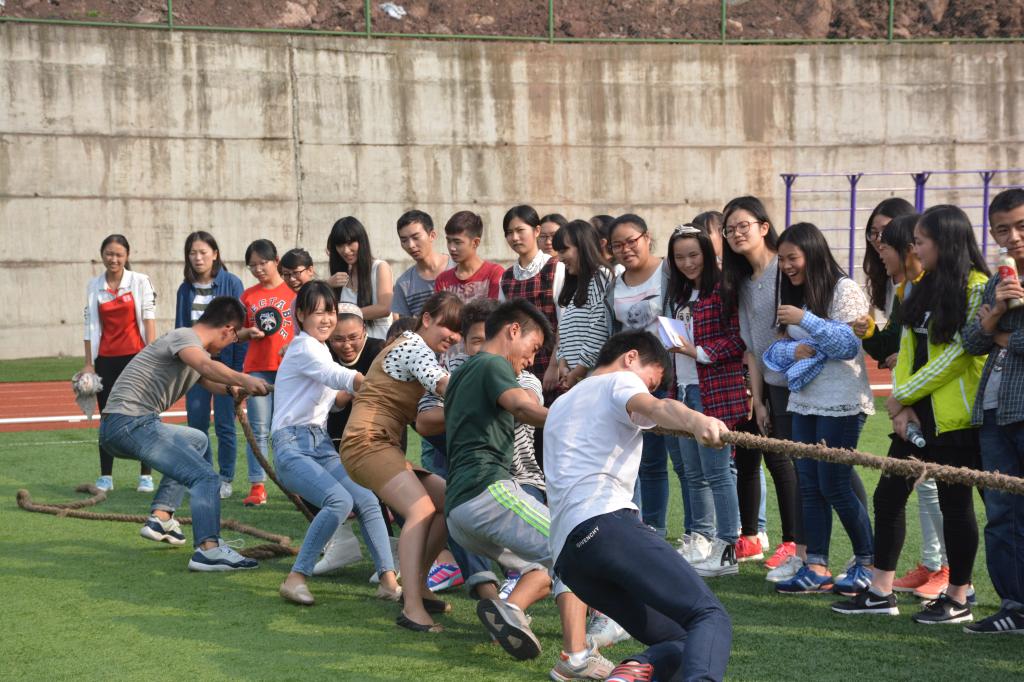 经历了小雨后的北区操场阳光正好,惠风和畅,从江北校区赶来主校的15级干事们也激情饱满,斗志昂扬。本次活动分为蜈蚣赛跑、五人六组、暧昧接力、疯狂指压板和夹弹珠,选出前六名参加最后的拔河决赛。活动伊始,分团委员工会体育部以男干事居多的压倒性优势在五人六组的热身赛中就取得了爆发性的成绩,整齐而响亮的“一二!一二!一二!”的口号让观赛观众都不由自主的赞叹。在其他的游戏环节,各个部门都彰显了积极的参赛热情和高昂的战斗力,暧昧接力时的默契,疯狂指压板时的坚强和夹弹珠时的沉静,每一次胜利都伴随着参赛者的喜悦和同伴们的欢呼。