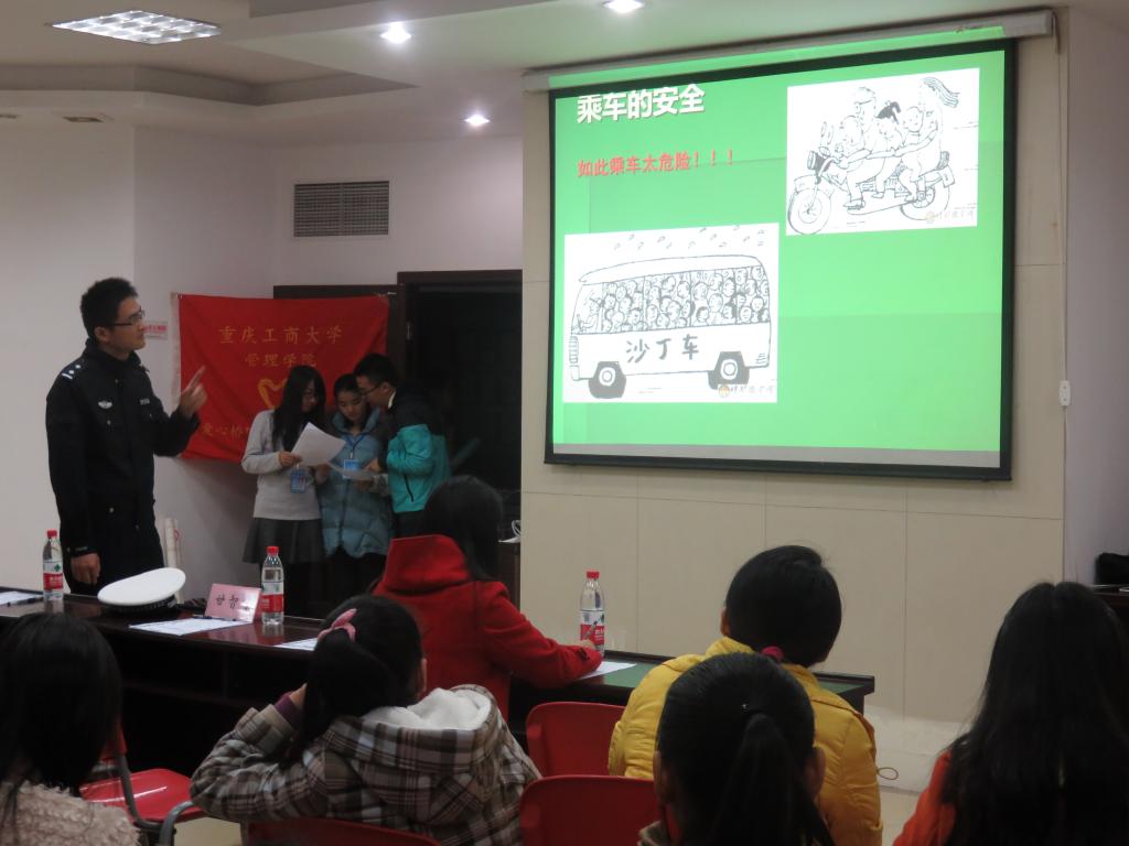 为迎接第3个全国交通日,11月29日,英国365上市公司管理公司“爱心桥”义工•志愿者协会邀请重庆市南岸分局交通警察巡逻队第八大队甘智才警官在学苑社区开展了以“关注交通安全,共建和谐社会”为主题的公益讲座。