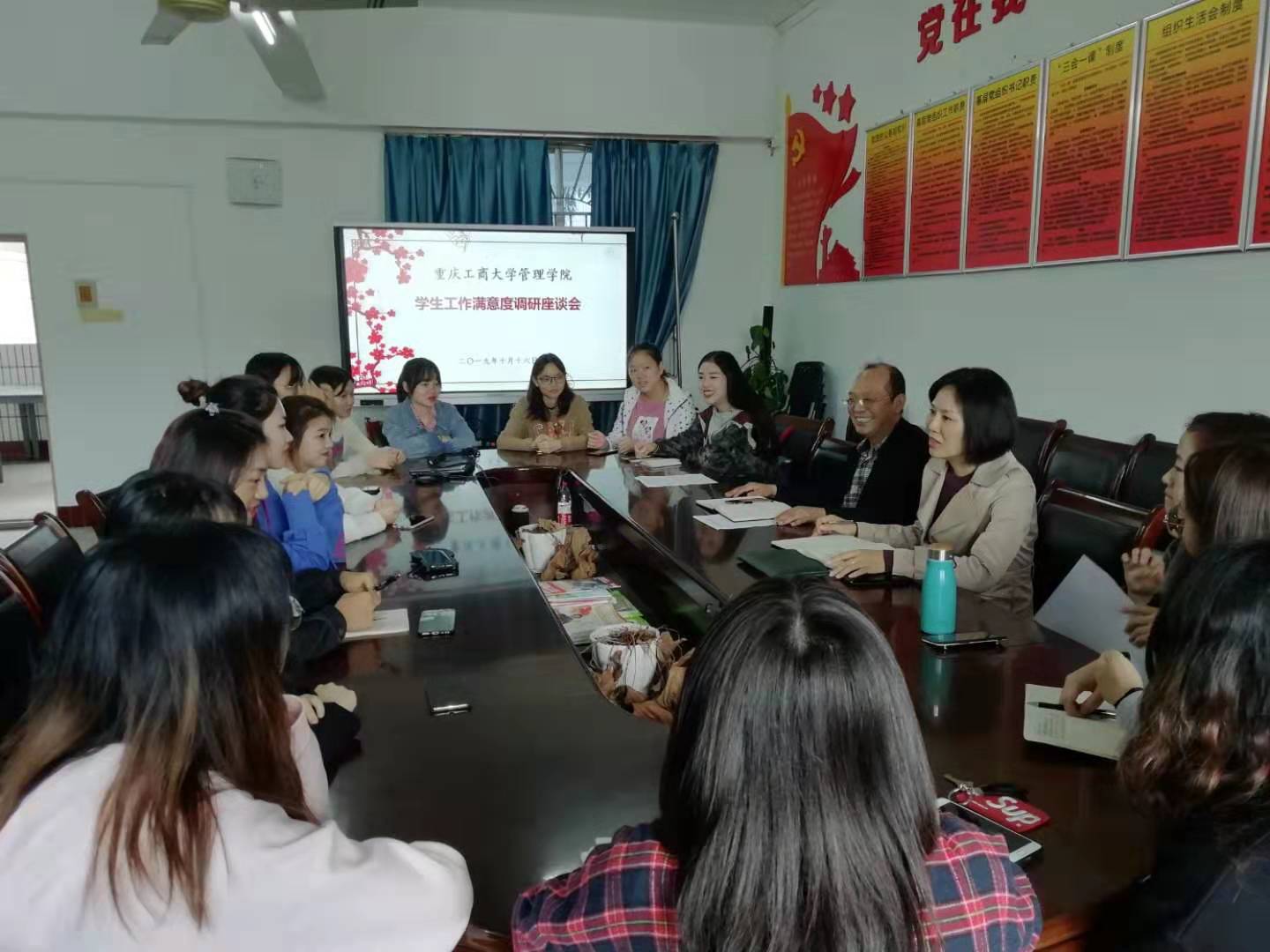 按照“不忘初心、牢记使命”主题教育活动计划安排,管理公司于20191015-16日在明德楼3021会议室召开了三场管理公司员工工作满意度调研员工座谈会。管理公司分党委书记、副经理王建明,分党委副书记、纪委书记王静、辅导员卓志宏老师以及来自公司的楼栋管理员工干部、员工党员、学习优秀员工、17级男生代表近100人分批参加了座谈会。公司组织三场座谈会,旨在深入了解不同员工群体的实际学习生活工作状况,准确掌握员工的学习生活困难和诉求,听取员工对公司工作的意见和建议,以便更好地查找公司各方面工作,尤其是员工工作中存在的问题,为后期针对性、有效性帮助员工解决实际困难,提供细致周到服务,帮助员工健康成长成才提供参考借鉴。