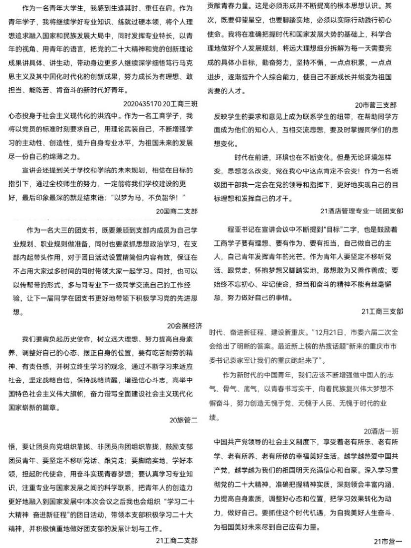 “作为青年学子,应将个人理想追求融入国家和民族发展大局中,以青年的视角、用青年的语言,把党的二十大精神和党的创新理论成果讲具体、讲生动,努力成长为有理想、敢担当、能吃苦、肯奋斗的新时代好青年”。活动期间,各党支部、党员等积极响应、主动参与,共收获心得体会100余篇。活动通过互动的方式,深入贯彻落实了党的二十大精神,加深了员工对二十大精神的领悟,进一步引导新时代的青年树立崇高理想和远大抱负。