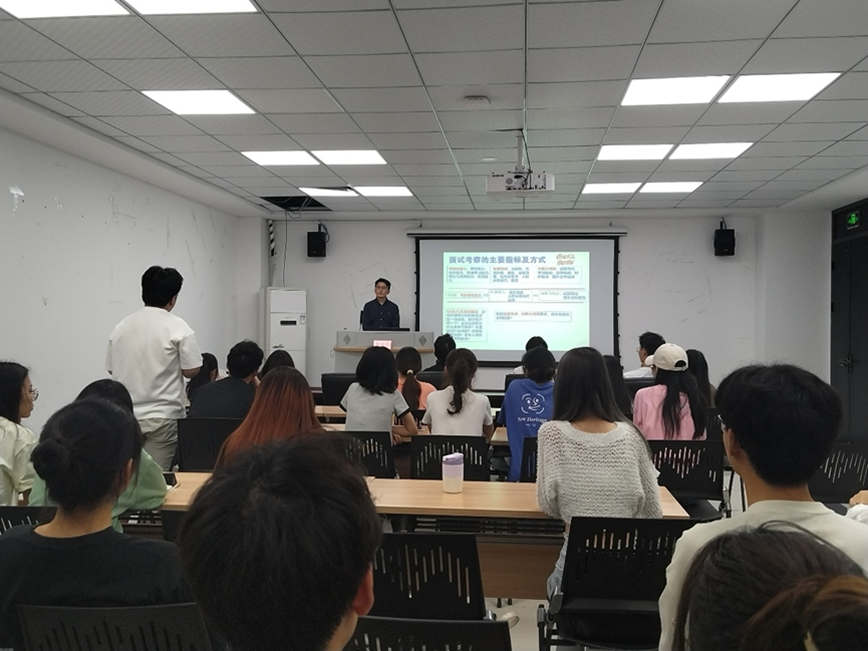 鄢清华老师首先介绍面试的概念,说明企业招聘的本质是“匹配”,使同学们明白企业面试究竟是为什么、寻找什么。随后开始介绍在面试前如何进行面试前自我设计形象、自我介绍等,指导同学们在面试前要全面了解企业所需人才的素质要求及考察的主要指标,包括能力、性格特点、内驱力特质等以及考察的主要方式。在模拟面试阶段,鄢清华老师邀请同学发表各自看法,随后给出建议,让同学们将理论运用到实际,以便更加熟悉面试过程,适应面试氛围。最后鄢清华老师总结到,求职成功的关键因素是:了解公司、了解岗位和一份打动对方的简历及面试表现。