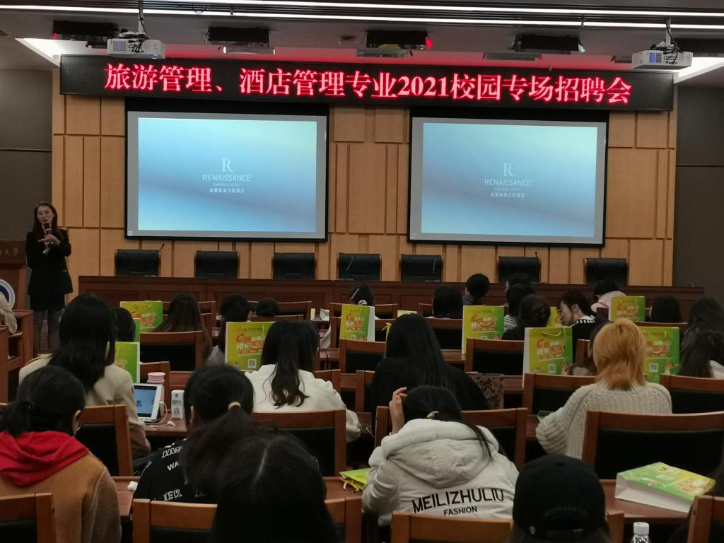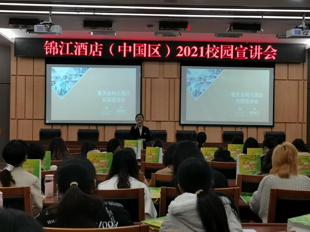 3月25日,深圳锦江酒店管理有限公司、重庆金科大酒店、成都首座万丽酒店、成都首座万豪酒店、重庆丽晶酒店受邀来到公司新图书馆一会议室开展专场宣讲会。英国365上市公司旅游管理系主任白佳飞老师和一百三十名同学参加宣讲会。