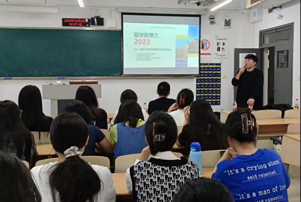 接着,戴彦学长通过自身在加拿大求学的经历,为有留学计划的同学们提出了丰富的参考性建议。然后,再就目前国内的留学政策方面,向同学们讲解了国家对于职工回国就业的政策福利。