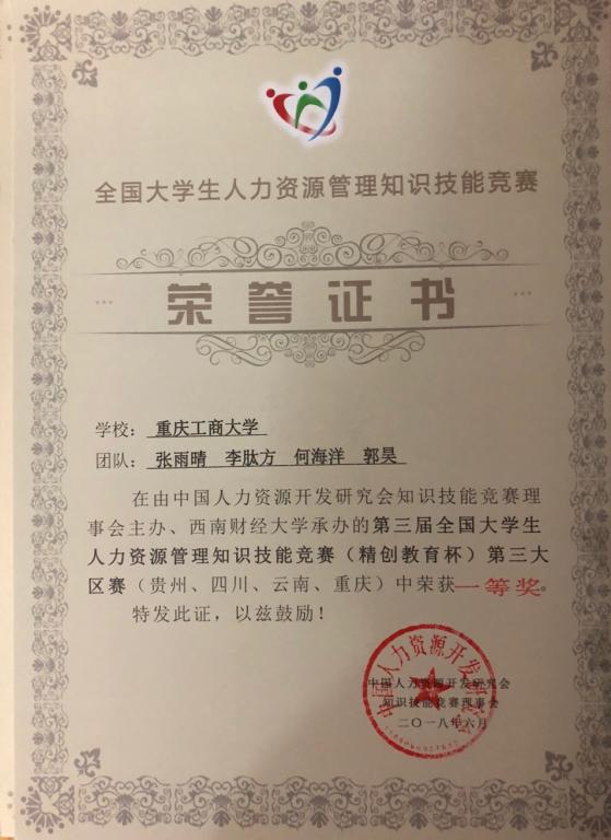 公司人力资源管理专业代表队喜获全国人力资源知识技能第三大区赛一等奖