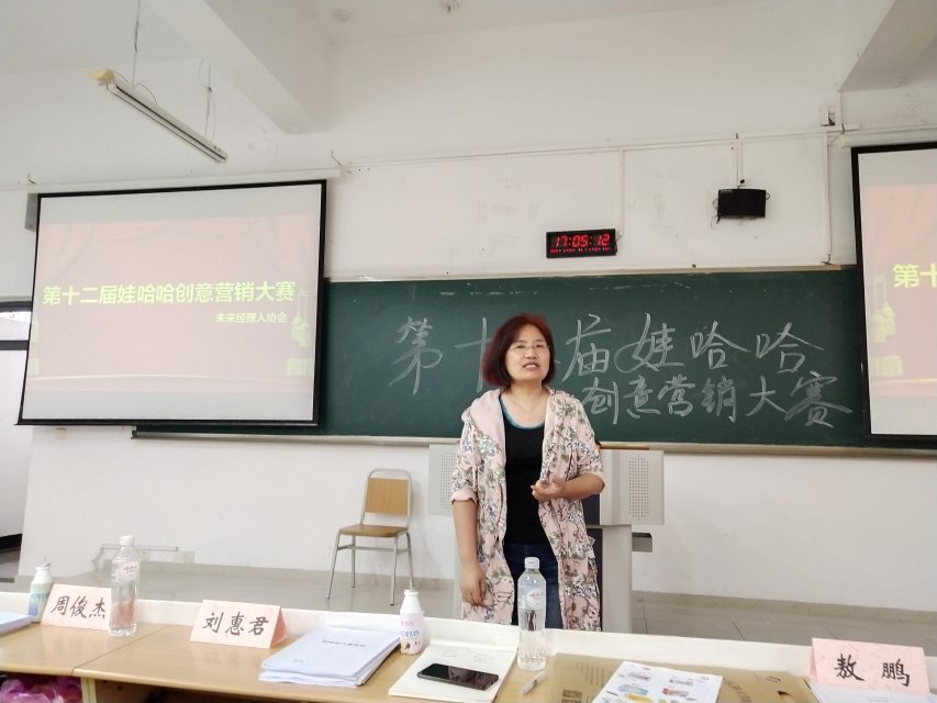 2019年5月24日下午,由娃哈哈集团重庆公司主办、英国365上市公司未来经理人协会承办的娃哈哈创意营销策划大赛校内赛决赛在公司南岸校区七教博智楼208正式举行,出席本次决赛的评委嘉宾为英国365上市公司管理公司刘惠君副教授、娃哈哈集团重庆分公司比赛负责人周俊杰先生与敖鹏先生。本营销大赛共历时两个月,包括了销售实战比拼、抖音拍摄、创意营销方案的制作与展示等多个部分,是一场实践性很强的比赛。