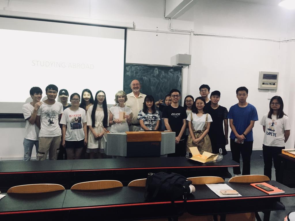 2019年6月18日晚,来自英国林肯大学的Jennifer Johnson教授及其丈夫Edward. Johnson律师再次走进2018级工商管理国际班的课堂,与同学们分享了在国外留学尤其在英国留学的一些注意事项。