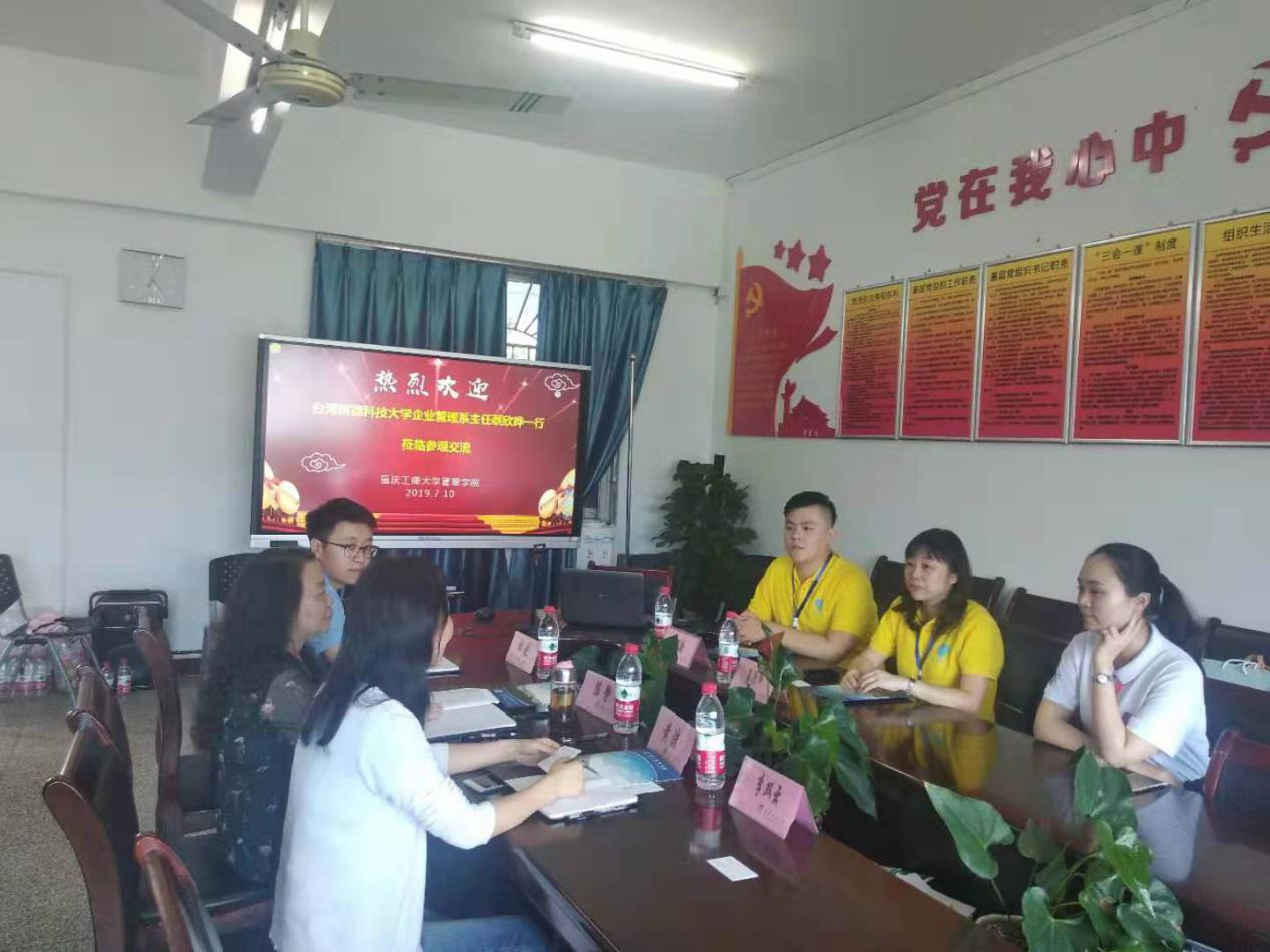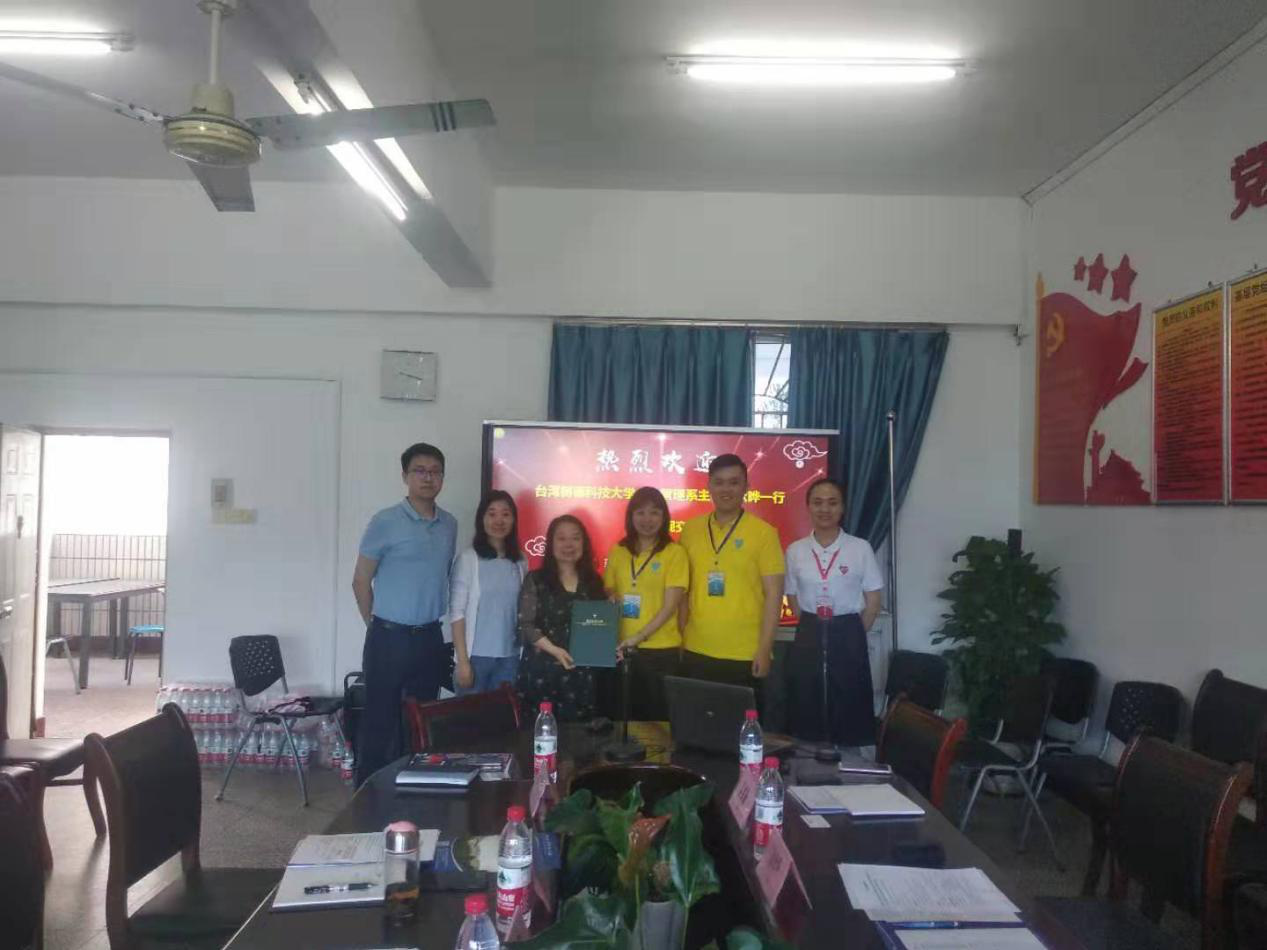 7月10日下午2:00,2:00,台湾树德科技大学管理公司企业管理系主任蔡欣晔一行2人在国际合作与交流处(港澳台事务办公室)杜晓老师的陪同下,莅临公司就师生交换学习、学术交流合作等事宜进行交流。工商管理系主任陈静教授、项目合作办公室主任黄洁博士及公司教学秘书李双云老师参加交流会。
