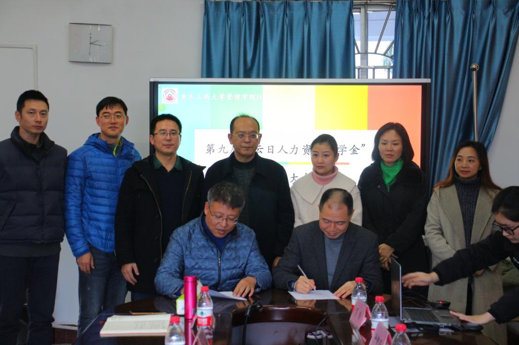 首先,杨柏教授致开幕辞,对云日集团给予管理公司人力资源专业优秀员工的奖励和支持表示感谢,并高度赞扬了云日集团教育情怀,认为云日将学金对管理公司产教协同育人具有重要意义。随后,经理杨柏教授与云日集团副总裁徐朝伦签订了下一年奖学金支持协议。