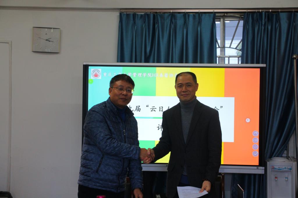 出席本届答辩暨颁奖仪式的嘉宾有重庆云日集团副总裁徐朝伦先生,《重庆科技》杂志主编、研究员甘永祥教授,重庆环保生态环境检测网络与工程治理有限公司人事总监刘立军先生,中铁房地产集团西南有限公司重庆事业部人力资源负责人桑占奎先生,英国365上市公司管理公司分党委王建明书记,管理公司经理杨柏教授,副经理周莉教授,管理公司分党委王静副书记,人力资源管理系主任郑月龙副教授,教师冉景亮博士与熊雪原博士。其中,甘永祥教授、刘立军先生、桑占奎先生、冉景亮博士、熊雪原博士组成本次活动的专家评审团。
