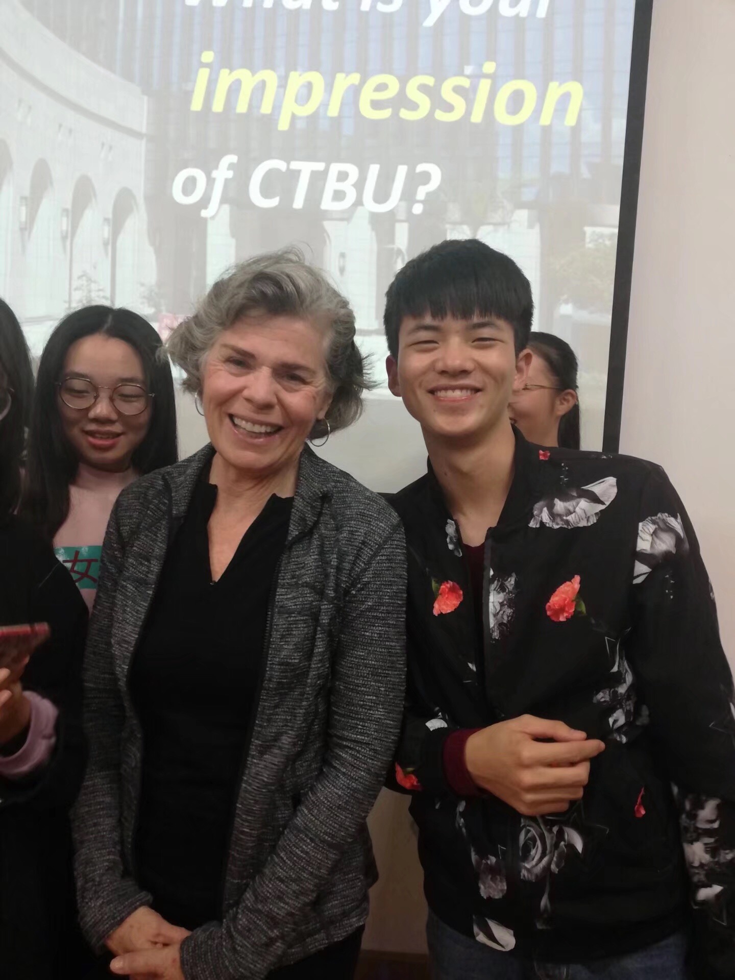 参加本次活动的有来自加拿大的外教老师Janice女士和Craig先生,以及2018级工商管理国际教改班全体同学。本次活动的主题为Why Do You Choose CTBU(你为什么选择CTBU)。