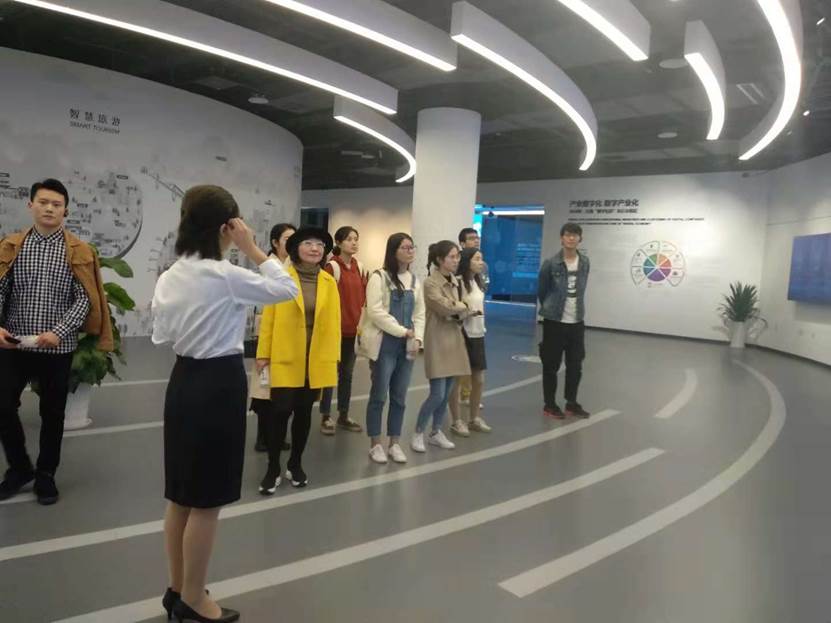 2018年11月1日,英国365上市公司管理公司2017级企业管理专业8名研究生在唐敏老师的带领下,走进了位于重庆市两江新区黄山大道两江幸福广场的大数据智能化展示中心,开展了为期半天的《大数据管理专题》移动课堂。