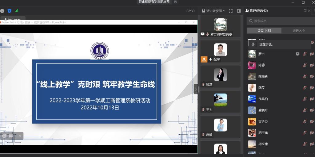 10月13日晚,工商系全体教师通过企业微信会议,开展了工商管理系10月份的教研活动,本次教研活动由工商管理系副主任张煜博士主持。