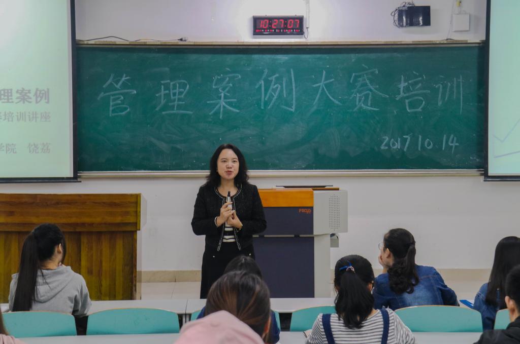 第五届管理案例大赛拉开帷幕,为了让大家更好地理解管理案例的构成、内容和作用,进而对如何编写管理案例形成正确认识,10月14日上午10点30分,由管理公司工商管理专业协会主办的“认识和编写管理案例——管理案例大赛培训讲座”在博智楼07121教室顺利举办。此次讲座由工商管理系副主任饶荔副教授担任主讲人。来自大赛报名的56支参赛队伍的约100名同学聆听了讲座。