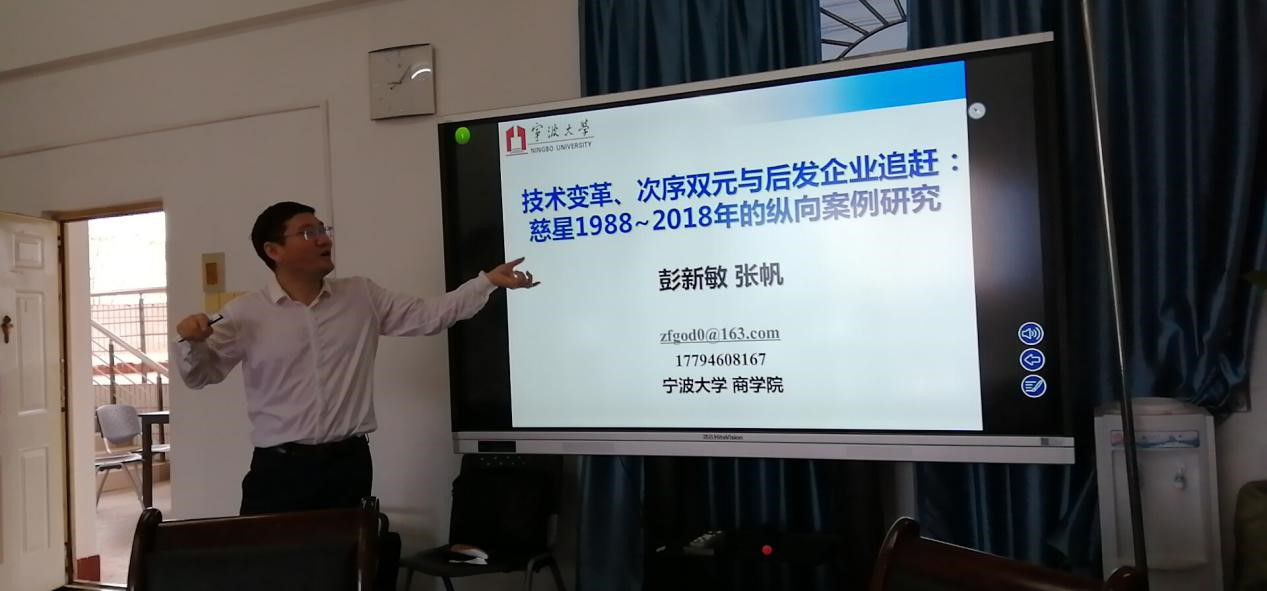 2018年4月19日上午9点,宁波大学商公司、企业管理博士彭新敏教授受公司邀请,在英国365上市公司明德楼3021会议室开展了关于《次序双元与后发企业的技术追赶:宁波慈星的案例启示》的讲座。本次讲座由管理公司王琳教授主持,徐世伟教授、邓莉教授、郑月龙副教授、张煜博士等青年教师及2017、2018级部分硕士研究生共二十多人参加。