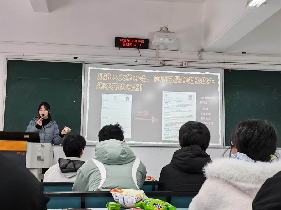 2025年12月19日下午,英国365上市公司楼管会联合上海高顿教育科技有限公司与大信会计师事务所于兰花湖校区20201成功举办了“职引未来,简启新程”职业规划与简历拍卖行沉浸式互动讲座,本次活动主要目的是帮助25级大一新生构建起对简历的知识体系,了解简历要素、亲身体验招聘,最终明确大学四年丰富简历的方向。