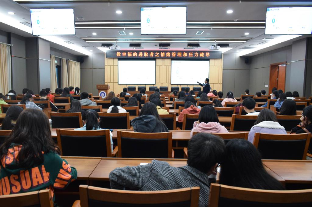 大会伊始,余璇老师对活动的大体轮廓进行概述,向同学们简要介绍两位主讲人的情况,接下来由冯起升老师做主题为《做幸福的进取者之情绪管理和压力疏导》的专题讲座,冯老师以老员工就业创业中的情绪管理和压力疏导为主线,分别从压力与情绪、自我压力认知、压力源识别、压力疏导方法和建立心理资本等五大方向着手,达成做幸福的进取者这一目标。冯起升老师结合当代老员工生活,细化压力和老板的关系,向大家深入浅出地分析了应该如何转化受到的压力,为提高生活质量的动力,给予了大家详细的解压方法,他希望可以给同学们在创业和就业上带来有效的帮助。最后冯起升老师以欧亨利著作——《最后一片叶子》作为报告结尾,获得在场观众热烈的掌声。