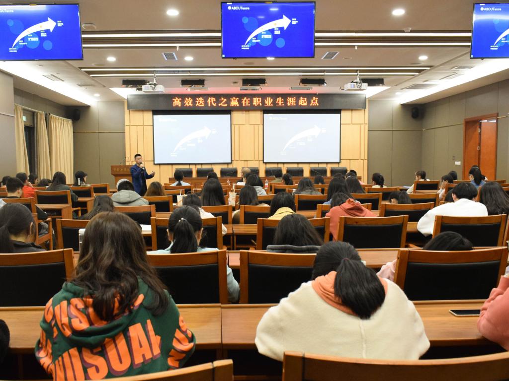 凌淼老师以《高效迭代之赢在职业生涯起点》为主题,提出问题“是什么决定了我们的收入和待遇”,并与同学们展开激烈的讨论并请部分同学发言。他向在场同学逐步分析了就业前景和创业可能遇到的问题,邀请大家进行了生动有趣的压力测试,同时指导同学思考发言,引导同学们的思维,诠释了何为高效迭代。