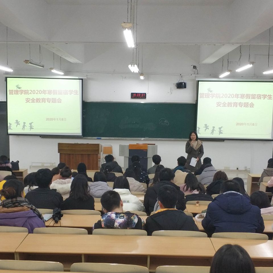 为了加强寒假留宿员工的安全管理,管理公司于2020年1月8日19:00在07207教室召开了2020年寒假留宿员工安全教育专题会。管理公司党总支副书记王静、楼管会主任卓志宏、辅导员聂树平出席了本次会议,管理公司104名留宿员工参加了此次会议。