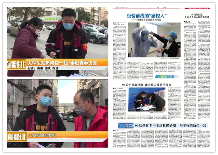 今年1月,新冠肺炎疫情迅速席卷全国,在这场抗击新冠肺炎疫情的全民阻击战中,许多人都在为抗击疫情而默默奉献。在抗击疫情最前线,有“白衣战士”们坚定的身影;在防控疫情的大后方中,有社区党员干部和志愿者们守护着群众。在这些人中,管理公司17级信息管理与信息二班的郭泽康同学主动申请成为社区志愿者,用抗击疫情的实际行动诠释新时代青年老员工坚定不移的理想信念和敢于担当的大无畏精神。郭泽康同学脚踏实地的工作态度、谨慎细致的工作方式、高效无误的工作成绩赢得了当地群众和领导的肯定和赞赏,他的先进事迹被淮北电视台和淮北日报等媒体争相报道,成为当地青年人学习的榜样。
