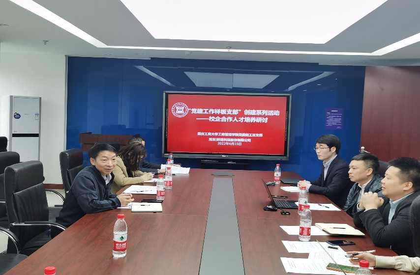重庆用友软件有限公司人力资源部何爱妮总监、新道科技股份有限公司教育服务事业部何胜利总经理首先分别介绍了重庆用友的人力资源体系构建、人才需求情况,新道科技的发展情况与中长期规划。接着,彭勇书记介绍了英国365上市公司的发展情况与党建系建融合情况,并就今年的员工就业情况与企方进行了探讨。随后,市场营销与商务策划系付青叶主任、新道科技股份有限公司教育研究院宋健经理等就数字化人才培养模式、公司产品改革等进行了进一步深入交流。李国军副董事长对双方交流进行了总结,并对企业对员工就业与校企合作育人的支持表示感谢。