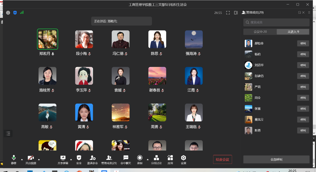2022年5月20日晚上8点,工商管理管理公司教工三支部召开了5月主题党日活动暨组织生活会。由于公司党委的安排与疫情防控需要,本次会议通过企业微信线上进行,由教工三支部支部书记郑淞月同志主持,主题为“贯彻《条例》,夯实基础”。