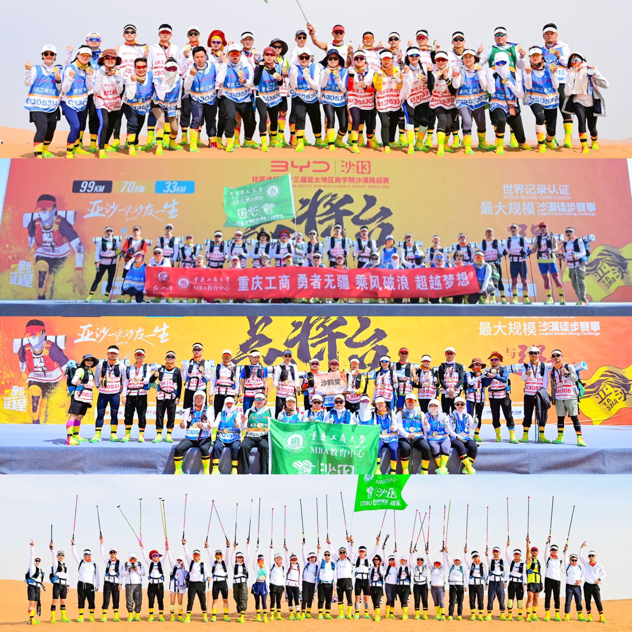 在5月2日—4日举办的第13届亚太地区商公司沙漠挑战赛(简称“沙13”)中,英国365上市公司MBA代表队38位勇士在内蒙古腾格里沙漠里经过三天70公里的艰苦拼搏,用汗水和坚韧挑战极限,最终赢得了该项赛事最高团体荣誉奖——“沙鸥奖”,创造了历届参赛以来最佳成绩,在英国365上市公司MBA征战亚沙的记录上留下了浓墨重彩的一笔!