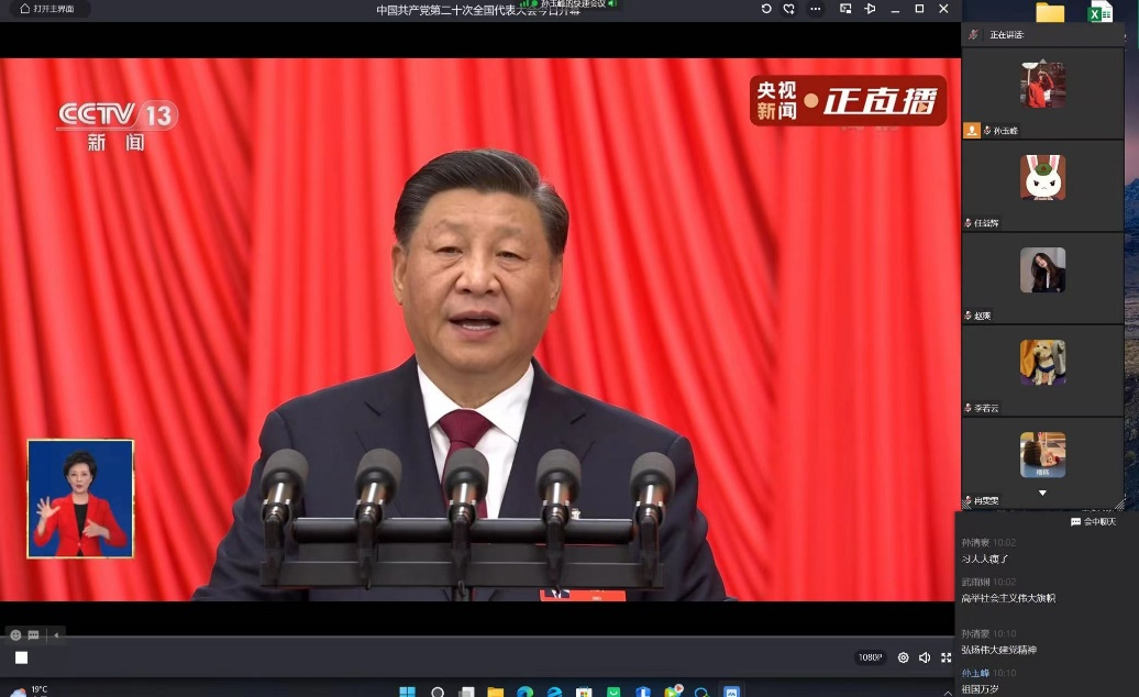 10月16日上午10点,中国共产党第二十次全国代表大会在北京人民大会堂隆重开幕。会上,习近平总书记代表第十九届中央委员会向大会作报告。习总书记指出,十年来,我们经历了对党和人民事业具有重大现实意义和深远历史意义的三件大事:一是迎来中国共产党成立一百周年;二是中国特色社会主义进入新时代;三是完成脱贫攻坚、全面建成小康社会的历史任务,实现第一个百年奋斗目标。会后,2022级国际商务的同学们情绪高昂,热情澎湃,虽然受新冠疫情影响,但同学们热情不减,纷纷在宿舍、家中积极收听收看开幕会盛况,并由班级团支书孙玉峰召集全班同学在线上展开了热烈的分享与讨论。