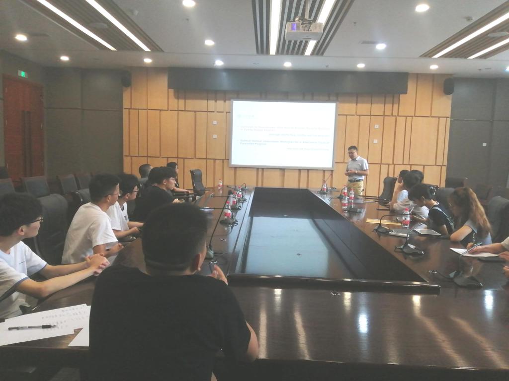 接着,是学术分享环节,首先马教授对自己的学术经历及研究心得进行了分享,指出搞学术研究“需要做有心人”;然后,分享了题为“Upstream and Downstream: Who should Provide Trade-in Services in Dyadic Supply Chains”和“Optimal Vertical Joint-rebate Strategies for a Short-term Trade-in Promotion Program”两项研究成果,介绍了研究构思、研究方法及研究结论,并详细介绍了研究过程和研究结论和建议提出的思路和依据。