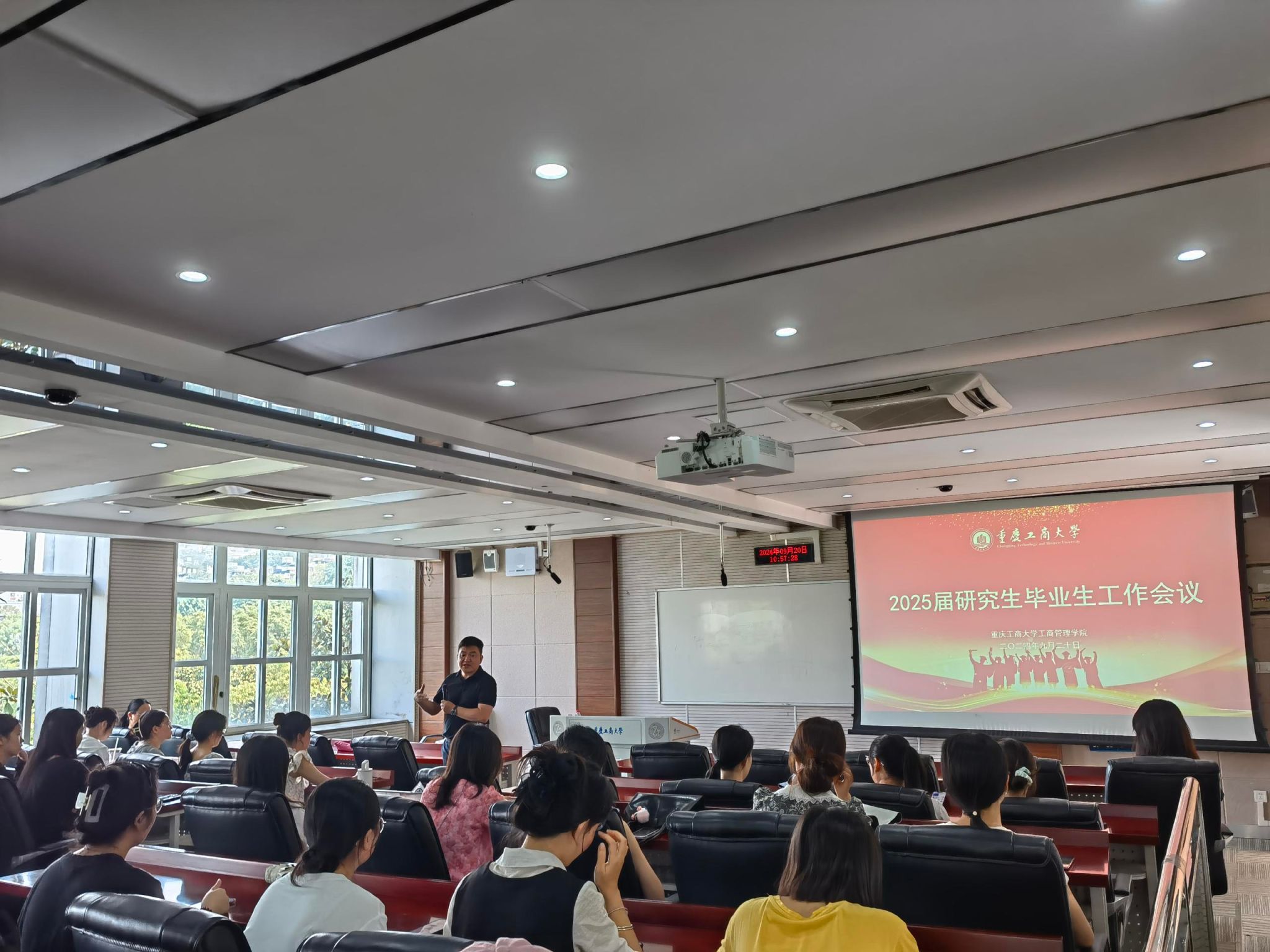 上午10:00,明智楼11306教室,公司党委书记陈亚惠与经理陈伟为2025届研究生毕业生召开就业工作会议。会上,陈伟经理对研究生各专业就业发展方向进行了详细介绍,鼓励同学们做好学业和职业规划,有学业深造计划的同学把握好公司资源多开展学术研究。陈亚惠书记深入剖析了当前就业市场的复杂形势与积极趋势,特别强调了“金九银十”招聘黄金期的宝贵价值,鼓励毕业生们积极行动,把握机遇,通过广泛投递简历、主动寻求实习机会等方式,尽早明确职业方向,力争在激烈的竞争中脱颖而出,找到心仪的工作岗位。
