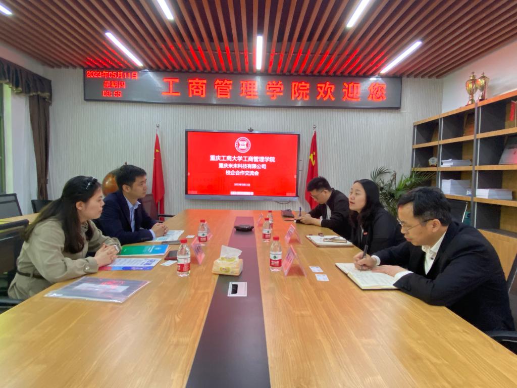 2023年5月11日,工商管理系副主任张煜邀请重庆米未科技有限公司负责人到校开展校企合作交流,公司党委书记、副经理陈亚惠、市场营销与商务策划系副主任莫小平参加了座谈。双方就教育部供需对接育人项目、员工实习实践平台搭建、毕业生就业招聘等事宜进行了深入交流。