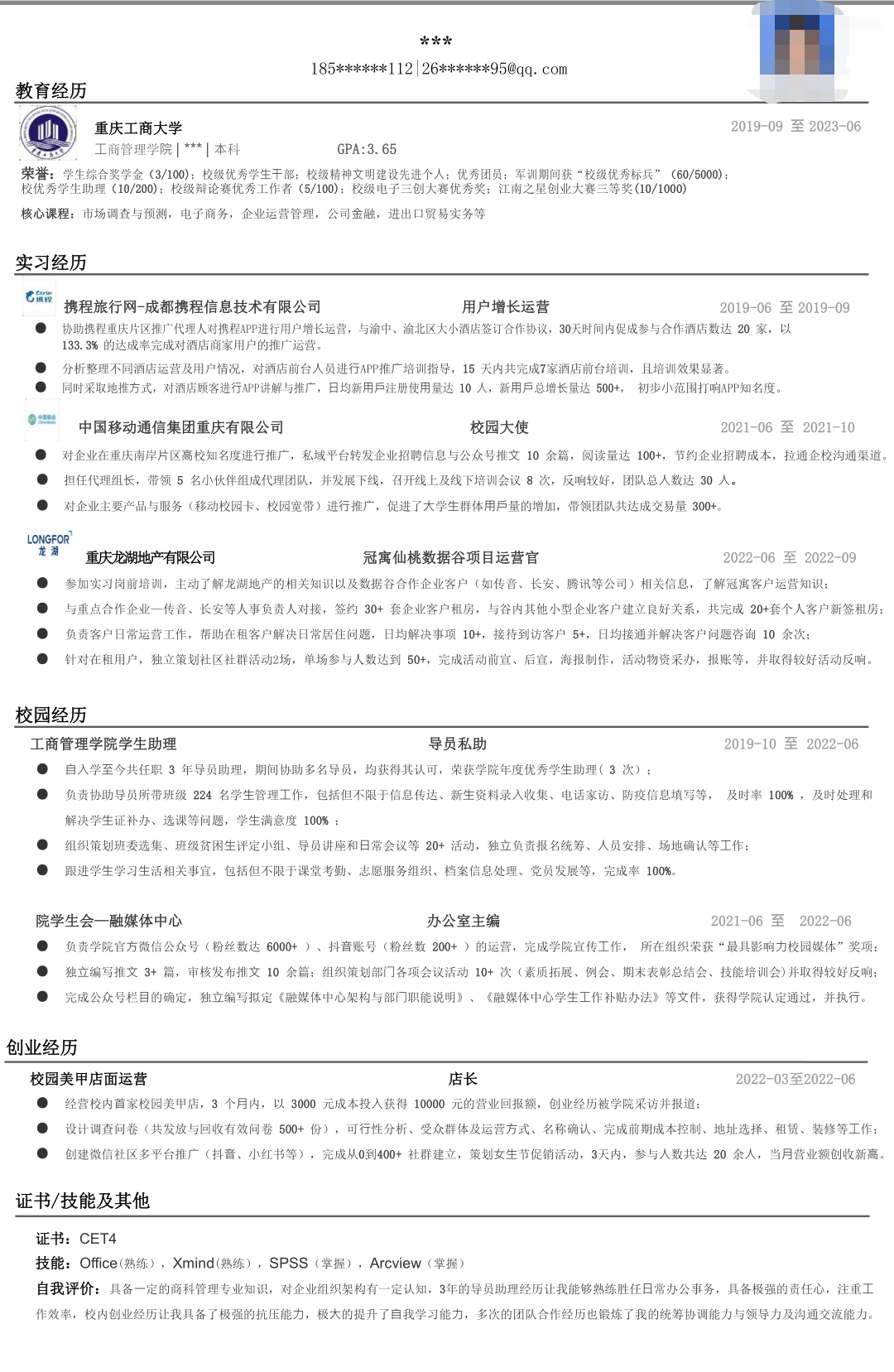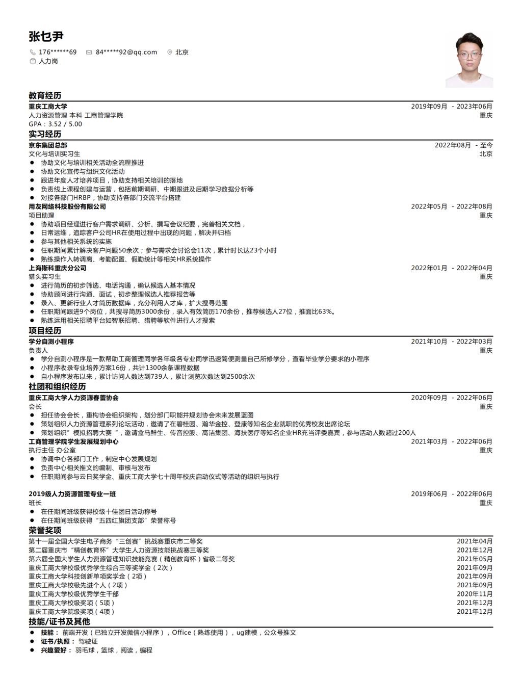 2023届毕业生优秀简历展示第一期