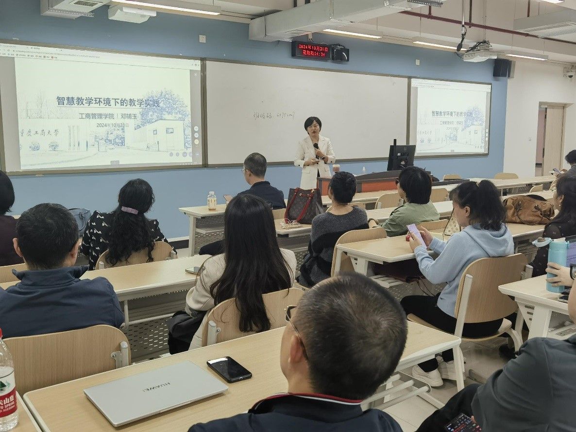 会上,老师们先是共同探讨了当前传统课堂教学面临的困境,邓辅玉老师提出,高校教师必须转变角色,从知识的传授者转变为学习的引导者和促进者,以适应新时代教育的要求。而后,邓辅玉老师分享了自己在教学实践中使用智慧教学技术的经验,详细讲解了“学习通”的教学应用全过程,介绍了“学习通”的功能。利用“学习通”进行课程管理、作业布置、在线测试等,能够有效地提升员工的参与度和互动性,提高课堂教学效率,实现教学的智慧化。